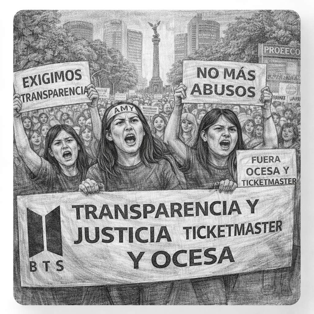 La protesta, organizada por comunidades como Army’s México BTS, busca exigir mayor claridad, transparencia y condiciones justas en la comercialización de entradas por parte de las empresas organizadoras, especialmente Ticketmaster y Ocesa K-Pop, ante presuntas irregularidades observadas durante la preventa.